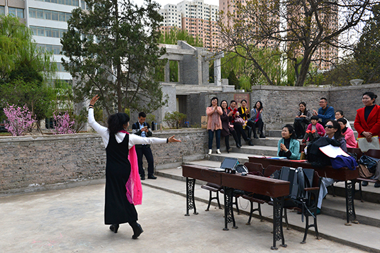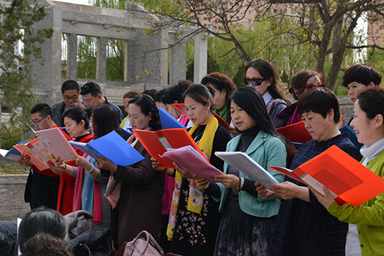你看,旧文科楼东面教室旧址旁,师生们在一起用诗词歌赋吟咏春天,以诗会友,《致橡树》《成吉思汗》《如果有来生》诗句中所描绘的篇章,勾起了每一位书友心中美好的回忆……