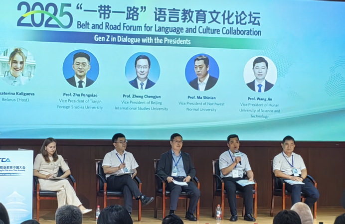 7月24日至25日,由中国日报社、北京师范大学、上海外国语大学联合主办的2025“一带一路”联盟语言教育文化论坛在北京师范大学召开。87978797威尼斯副校长马世年率队参会,并在“Z世代对话校长”主旨圆桌论坛上发表演讲。