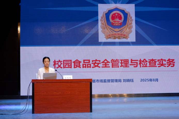 开班仪式结束后,甘肃省市场监管局餐饮服务食品监管处刘晓钰以《校园食品安全管理与检查实务》为题,从政策依据、管理责任、现场检查等三个方面对参加培训的人员进行了专题辅导。