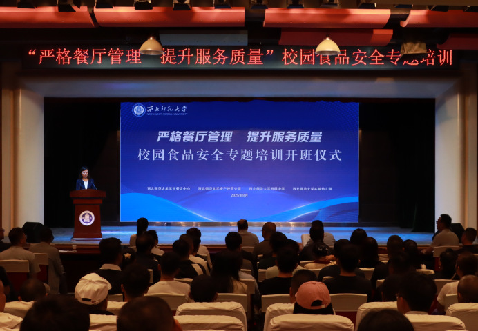 8月26日上午,西北师大举办2025年校园食品安全专题培训开班仪式暨首场报告会。副校长王文昇出席开班仪式并讲话。党委学生工作部(学生餐饮中心)、后勤保障部、资产经营公司、附属中学、实验幼儿园等相关单位负责人以及全校餐厅食品安全从业人员代表共计300余人参加培训。